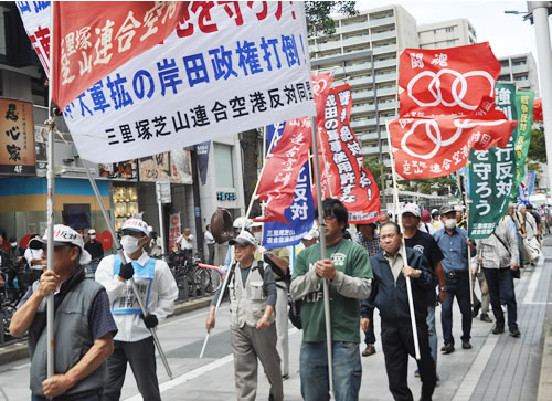 開廷に先立ち、千葉市中央公園で三里塚芝山連合空港反対同盟が呼びかける決起集会が開かれた。太郎良陽一さんが司会を務め、東峰の萩原富夫さんが発言。「NAA(成田空港会社)が市東さんを『不法耕作者』と言いなし、土地の明け渡しを迫っているのがこの裁判。不当判決を出すなと迫ろう」と訴え「農地を守り、軍事空港を阻み、戦争反対の闘いの先頭に三里塚は立つ」と宣言した。
