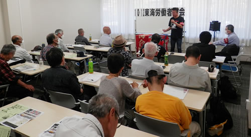 東海合同労組と改憲・戦争阻止!大行進東海が呼びかけた東海労働者集会が10月12日、名古屋市で開かれ、愛知・三重・岐阜から25人が参加しました。