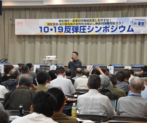 全日建運輸連帯労組関西地区生コン支部主催で「反弾圧シンポジウムin東京」が10月19日、東京の国鉄労働会館で開かれ、160人が参加した。関生支部は首都・東京に打って出て反転攻勢に弾みをつけた。