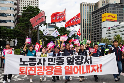 これに先立ち、9月28日には全国でユン政権退陣を求める時局大会が開催され、首都圏5千人、全国5万人超の労働者民衆が街頭に出た。民主労総組合員や農民、貧民が結集し、ユン政権退陣に向け11月から12月にかけて総力闘争に打って出ることを確認。16~17年のろうそく革命でパククネ政権を倒した労働者民衆こそがユン政権打倒の先頭に立つと宣言した。