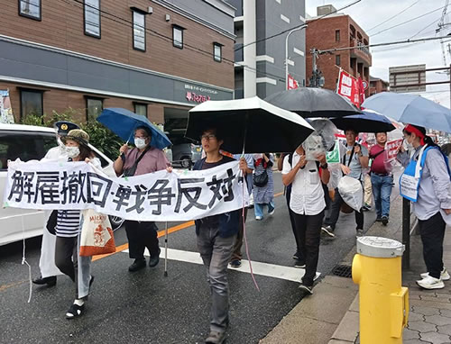 解雇撤回・戦争反対掲げデモ