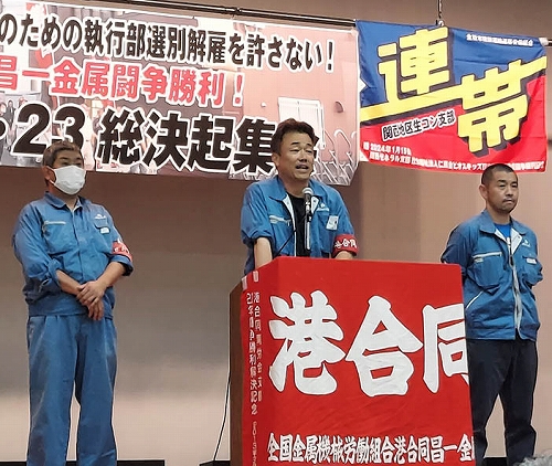 全港湾大阪支部の仲間が司会を務め、港合同の中村吉政委員長が「那須電機鉄工は昌一金属の労働者をバラバラにしたが、地域の労組の支援で、ものすごいスピードで反撃体制がつくられた。港合同の闘いをわれわれの代で終わらせるわけにはいかない」と力を込めて主催者あいさつを行った。