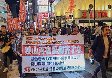 10月27日、全関西狭山集会が大阪市内の豊崎西公園に100人の結集でかちとられた。基調報告で全国水平同盟の久原正子委員長は「袴田再審無罪判決の勝利を引き継ぎ、次は狭山だ。11・3集会大結集の力で戦争を止め狭山再審を切り開こう。12・12狭山全国闘争―東京高裁包囲デモに決起しよう」と呼びかけた。