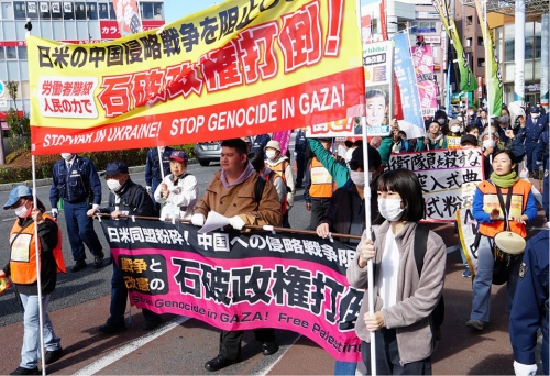 (写真 陸自朝霞駐屯地で行われる中国侵略戦争のための自衛隊観閲式を弾劾し、石破を直撃するデモに決起【11月9日 埼玉県朝霞市】)