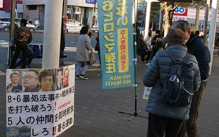 11月30日の午後、前進社本社の最寄り駅前で広島暴処法弾圧粉砕署名と「前進」販売の街頭宣伝を行いました。無実の5同志の年内奪還へ決意に燃え、多くの署名を獲得して討論の渦を巻き起こしました。