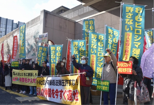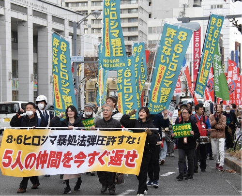 いま5人の仲間に加えられている弾圧は、8・6ヒロシマ―8・9ナガサキに体現される民衆の反戦・反核の意思を挫き、再び侵略戦争へ動員しようとするための見せしめです。その先にあるのは本当の戦争です。絶対に負けられません。