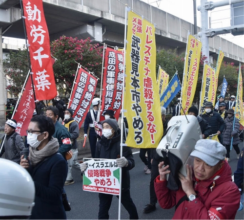 (写真 ガザ虐殺を賛美し中国侵略戦争を推進する武器見本市の開催阻止へ怒りのデモ【1月13日 千葉市】)