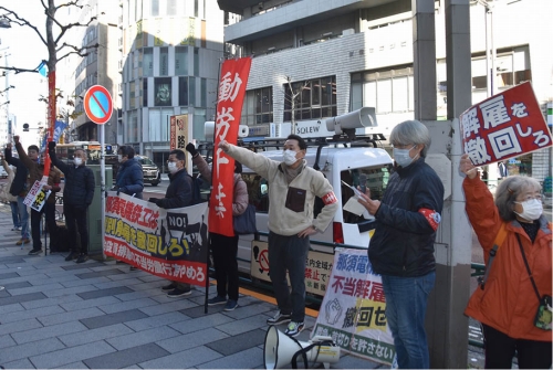 全国労組交流センターは1月20日、那須電機鉄工本社に対する今年初の抗議闘争に立った。東京メトロ・新宿御苑駅直近の同本社前に動労千葉、東京北部ユニオン、東京西部ユニオン、全学連、関生支援東京の会などが結集し、全国金属機械労組港合同昌一金属支部つぶしの不当労働行為を居直る同社の責任を、首都圏の労働者・学生の力で今年も徹底的に追及し続けると闘争宣言を発した。
