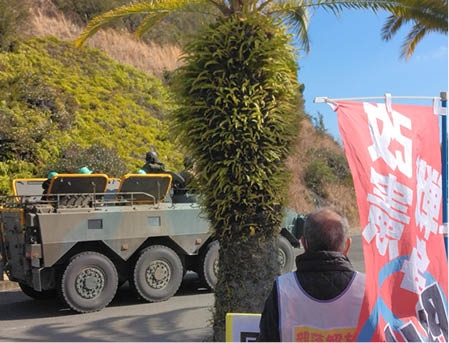穏やかな漁師町の町道を自衛隊の迷彩色の装甲車や軍用トラックが列をなして通りました。県立海部高校の最寄り駅の海南駅では、これ見よがしに装甲車とDMV(線路も走ることができるバス)が並走する。保育園児がヘルメットをかぶり、装甲車に体験乗車する場面もありました。異様な戦時下の風景です。