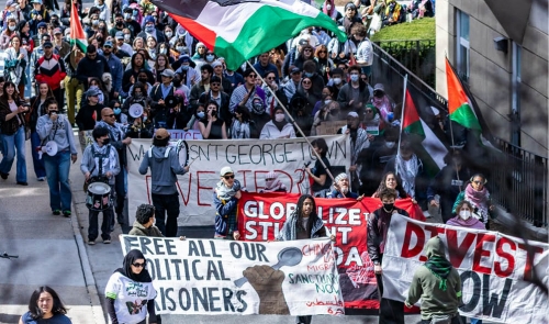 大学生がデモ隊の先頭に ガザ虐殺に全米で抗議拡大