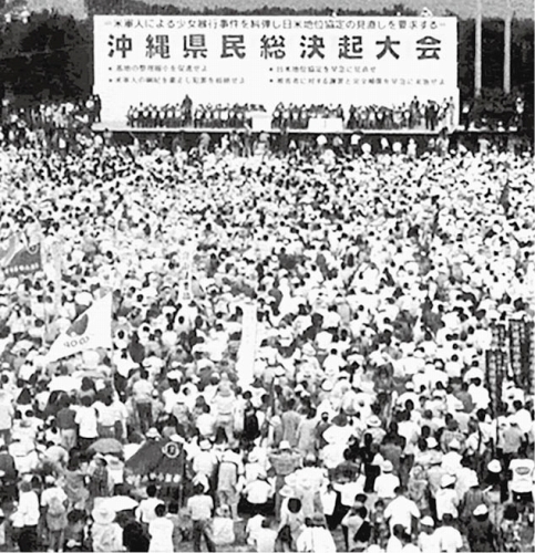そして52年4月28日、サンフランシスコ講和条約発効により連合国軍総司令部(GHQ)の占領統治が終了し、日本は独立するが、沖縄は同条約第3条に基づき日本から分離されて米軍の占領下に取り残された。戦後27年にわたり、憲法すら適用されない過酷な米軍支配のもと、軍用機の墜落事故や米兵の凶悪犯罪などに苦しめられた沖縄の人々は、4月28日を「屈辱の日」と呼び、本土復帰を要求する「4・28沖縄デー闘争」を闘うようになった。