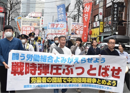 集会後、関生弾圧粉砕、中国侵略戦争阻止を訴え神田の街を貫くデモに出た。