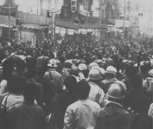 (写真 1971年11・14渋谷闘争。全学連、反戦青年委員会と共に数万の民衆が道玄坂で機動隊と対峙し、実力で闘った)
