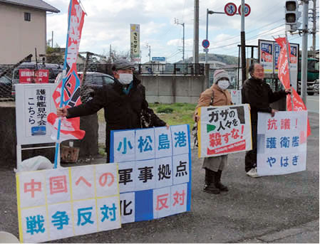 改憲・戦争阻止!大行進徳島は3月19日、海上自衛隊の護衛艦「やはぎ」の徳島・小松島港入港への抗議行動をしました。日本海側の舞鶴港を母港とする「やはぎ」が、太平洋側の紀伊水道に回り込んで入港するのは異例です。昨年の今頃、小松島港には海自潜水艦が数度浮上し、その1カ月後に海自小松島基地所属の対潜哨戒ヘリが小笠原沖で衝突・墜落したばかりです。台湾海峡での戦闘を想定し警告灯も消しての夜間潜水艦追跡訓練中でした。