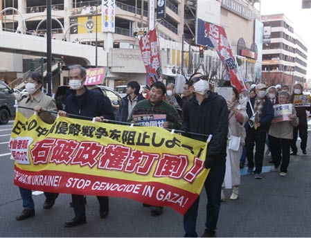 新潟市内で3月22日、反戦集会と反戦デモをかちとりました。終わらないウクライナ戦争、イスラエルによるガザ虐殺の再開、さらに「台湾有事」をあおり中国侵略戦争に進む日本政府と日本のメディアを切り裂く行動として企画し、初参加の学生から80代まで幅広い参加者がありました。とめよう戦争への道!百万人署名運動が改憲・戦争阻止!大行進へ歴史的に合流する闘いでもありました。