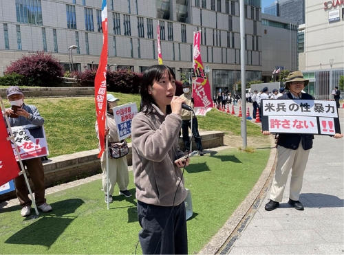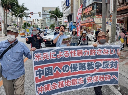 改憲・戦争阻止!大行進沖縄は4月26日、那覇市で沖縄県庁前反戦集会と国際通りデモを闘った。23日に発覚した米兵による女性暴行事件を徹底弾劾し、全基地撤去・安保粉砕を訴えた。右翼の妨害は逆に労働者民衆の怒りに火をつけ、若者やアジア・太平洋戦争を生き抜いた高齢の女性の合流がかちとられた。