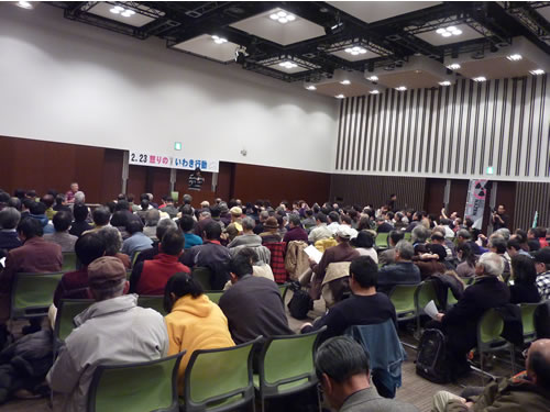 2月23日、NAZENいわき主催の「2・23怒りのいわき行動」は、いわき駅前ラトブ6階で、地元いわきなどから320人が集まり、反原発闘争の新たな拠点を切り開いた。三里塚反対同盟から伊藤信晴さん、宮本麻子さんが参加した。動労水戸平支部事務所の開設から2年、昨年いわき合同ユニオンが結成され、この1月にNAZENがいわきに誕生した。闘う労働組合が、原発・放射能と闘う住民運動の展望を切り開いた集会であった。