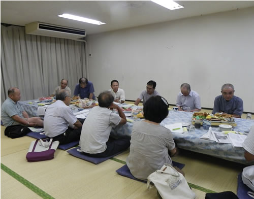 8月2日、全国農民会議・千葉の主催で、農民交流・学習会が、千葉県匝瑳(そうさ)市で行われ、反対同盟から市東孝雄さん、萩原富夫さんはじめ4人が参加し、匝瑳市、横芝光町、松尾町の農民たちと連帯を深めた。講師に「農民新聞」記者を招き、安倍政権の「農政改革」について解説を受けた。