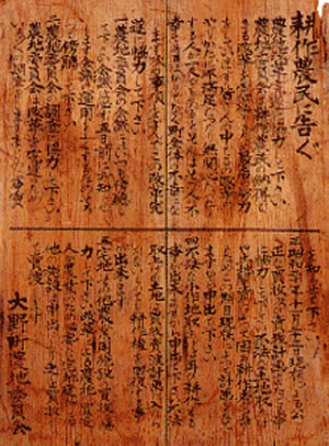 (写真 1946年に福井県大野町に掲げられた農地委員会の立て札。農地改革の実施を告知している )
