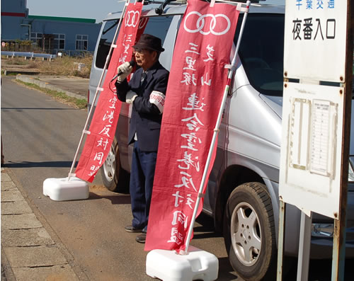 北原鉱治事務局長は宣伝カーに乗り込み、第3滑走路計画によって立ち退きや騒音被害を強制される地域を回り、成田市の川上、西大須賀の2カ所でスポット演説を行った。「巨大滑走路が造られたら、みなさんの生活はとんでもない被害を受けるというのに、まともな説明が一つも行われていない。48年前の閣議決定と同じ暴挙を許すことはできません。反対同盟とともに絶対反対の声を上げましょう」