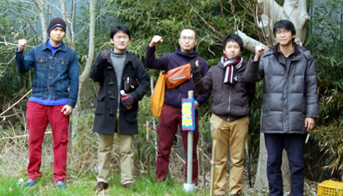 (写真 反対同盟一斉行動の前に、市東さん宅畑にある星野の木の前で記念撮影する全学連行動隊【3月15日】)