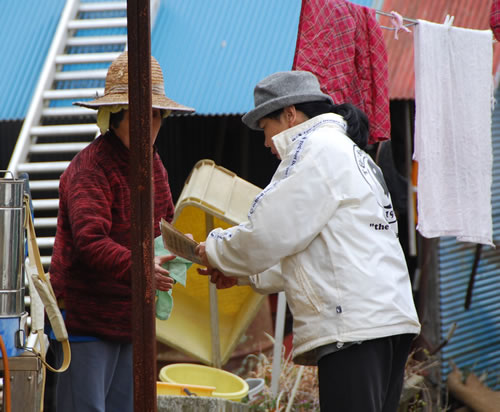 意思一致を受けて、全員が担当地区へ飛び出して行った。婦人行動隊の宮本麻子さんはこの日も川上地区を中心に回って奮闘した。宮本さんは、次々とニュース・ビラを渡していった。「栗山公園は、SLが展示してある市役所近くの公園だね。今回の集会はいい会場だ」と積極的な反応が返ってきた。また、カラービラを受け取るなり、「おっ、市東さん! がんばってください」と笑顔で応じる若い人も。この間の一斉行動を通じて、市東さんの顔も生きる姿勢も、人びとの心に深く印象付けられているのだ。