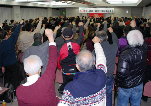 (写真 スト貫徹にむけて行われた動労千葉の総決起集会【3月13日 千葉市】)