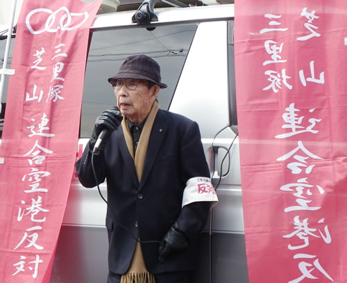 北原鉱治事務局長は、成田市川上地区、本三里塚地区の2カ所で辻立ち演説を行った。まず3・29集会の成功を報告した。「地元住民のみなさん、反対同盟は3月29日、47年前に実力闘争を闘った旧市営グラウンド=今の栗山公園で集会を行い、デモで市民のみなさんと交流しました」「みなさん空港ができて騒音問題と過疎化に苦しんではいませんか」と語りかけた。