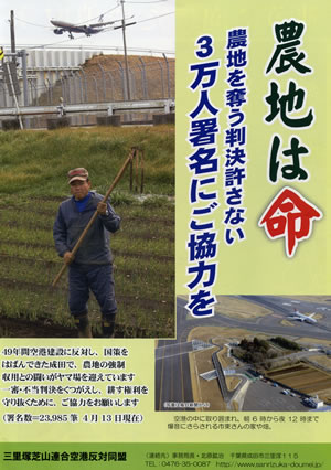 4月25日、東京高裁・小林昭彦裁判長による農地取り上げ判決阻止に向け、3万人署名達成を訴える反対同盟の新たなカラーリーフが発行された。