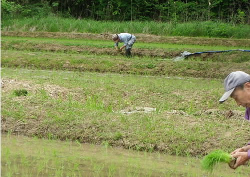 市東さん宅では、故東市さん以来こだわりの品種コシヒカリを20㌃の田に手際よく植えていき、こちらも午前中で作業は終了した。5〜8月の東京高裁決戦に向け準備は整った。
