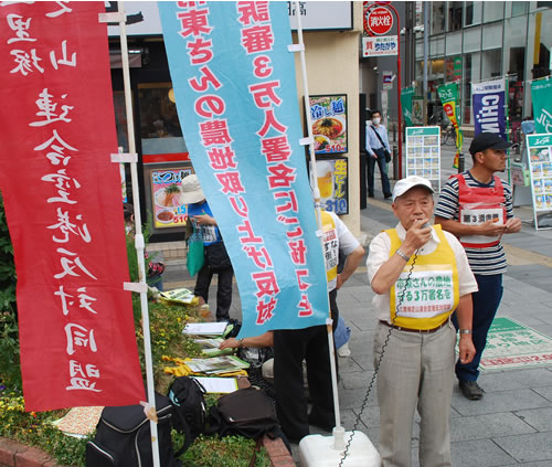 ●三里塚闘争支援連絡会議(支援連)は東京高裁前で小林昭彦裁判長を弾劾するビラをまき、その後上野で市東さん3万人署名に取り組んだ。(13日)