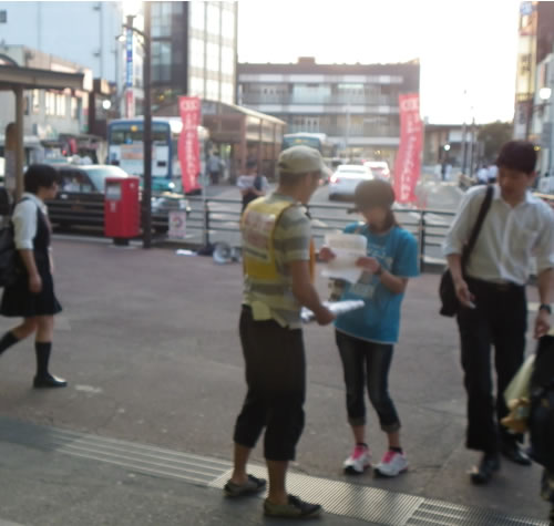 ●支援連は京成成田駅頭で街頭宣伝を行った。石毛博道らによる第3滑走路推進策動を弾劾した。(24日=写真=2面に記事)
