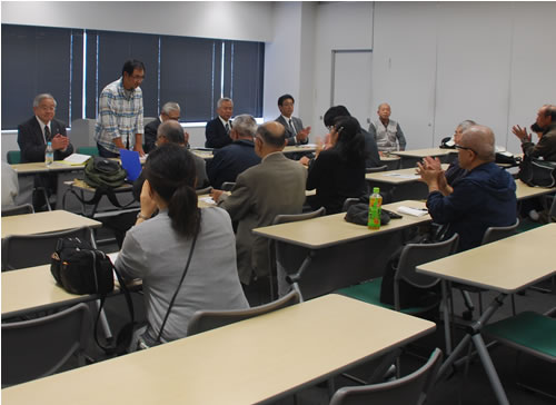 (写真 新やぐら裁判の後、裁判所近くで報告会を行った【10月19日 千葉市】)