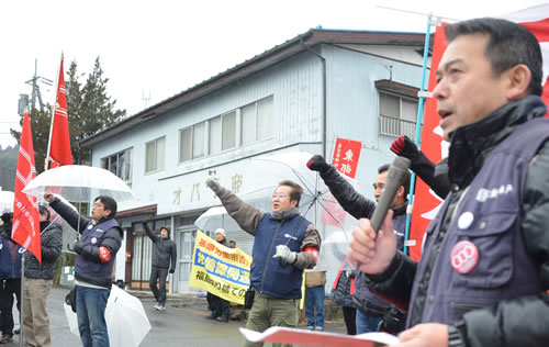 (写真 大子運輸科前でスト集会を行った【1月29日 茨城県大子町】)