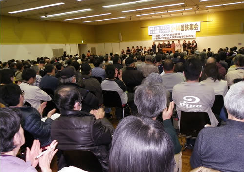 2月14日、東京・すみだ産業会館で開かれた「国鉄分割・民営化で不当解雇から29年2・14国鉄集会」(国鉄闘争全国運動主催)は、620人が結集して大成功した。2・14国鉄集会は、JRの不当労働行為を最高裁で認めさせたことをバネに、解雇者のJRへの採用を求める新たな全国署名運動の開始を宣言し、安倍の改憲・戦争と労働法制の大改悪に動労総連合の建設を軸に全面的な反撃に立つことを確認した。三里塚反対同盟からは萩原富夫さん、伊藤信晴さん、宮本麻子さんが参加した。