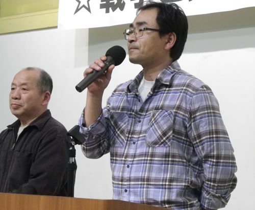 パクチョンソン全国鉄道労働組合ソウル地方本部長の集会メッセージを大きな拍手で確認した後、特別報告に入る。動労水戸の石井真一委員長は、ライフサイクル粉砕の會澤憲一さんの闘いを報告し、組織拡大と3・11郡山集会への結集を呼びかけた。「労働法大改悪との闘い」では、国鉄闘争全国運動・東京東部の会の小泉義秀さんが発言し、その重大性を強調した。