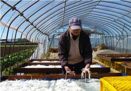 (写真 切り干し大根を干す萩原富夫さん【2月16日】)