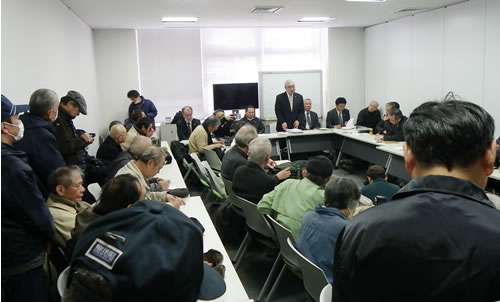 裁判後、千葉県弁護士会館での報告会が行われ、市東さんと各代理人からの発言が行われた。市東さんは「耕作権裁判は、NAAの対応を見ても裁判になるものではないことがはっきりしている。3・27全国集会、7月三里塚闘争50周年集会をやりぬいて、今年1年農地法最高裁闘争に勝利しよう」と勝利感に溢れる決意表明をした。葉山岳夫弁護士は、「最高裁で千葉地裁多見谷判決を打ち破るとともに、耕作権裁判を徹底的に闘う」と発言した。