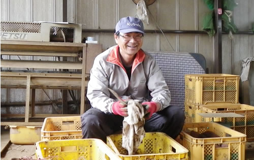 (写真 出荷のためのサツマイモづくりに精を出す萩原富夫さん【4月5日 成田市東峰】)