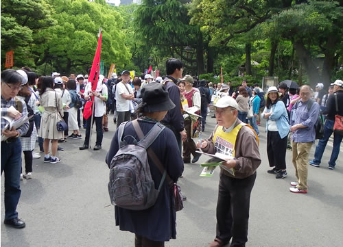 ●支援連は東京日比谷野音での全労協メーデーに参加し、市東さん署名を行った。その後、三里塚現闘と全学連行動隊は、闘う労組の新宿メーデーに参加した。(5月1日=写真=2面に記事)