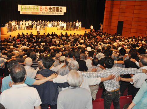 (写真 6・5国鉄闘争全国運動集会は、解雇撤回の新10万人署名運動の展開、7月参院選挙の勝利を誓って大成功した【6月5日 東京・江戸川文化センター】)