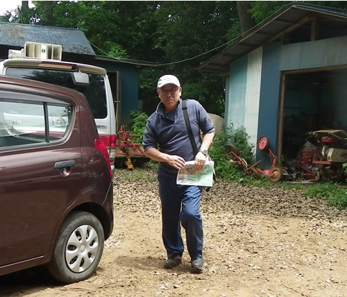 一斉に各持場地域へ出発。宮本麻子さんは担当地域である成田市川上地区を南から北まで、ニュースとビラの配布をやり切ることを重点に各家々を回った。