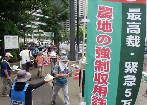 ●6・19沖縄県民大会と連帯した国会前行動に支援連が参加した。同時に、市東孝雄さんの農地を守る緊急5万人署名に取り組んだ。(19日=写真=2面に記事)