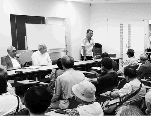 (写真 7・11耕作権裁判闘争の報告会で発言する萩原富夫さん【千葉市】)