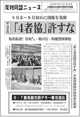 ●7月28日に、羽田空港増便のための東京都心ルートについて、地元自治体が「了承」したことに対して、大田区の区議会で批判の質問がなされ、多数の反対住民も傍聴した。(16日=2面に記事)