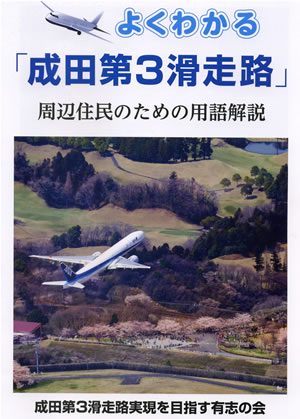 石毛博道、相川勝重や空港利権団体で組織する「第3滑走路実現を目指す有志の会」が新しいパンフレットを出した。「よくわかる『成田第3滑走路』周辺住民のための用語解説」(写真)は、第3滑走路案が周辺住民に受け入れられていない現実を前に、「用語解説」なる〝厚化粧〟を施して取り込もうとするものだ。しかし、墓穴を掘っている。何よりも第一に、パンフ最終面には「有志の会」の役職・氏名が連記されているが、会長、副会長など32名の半数以上が、地元の土建・建設・不動産など会社の社長名で占められていることだ。