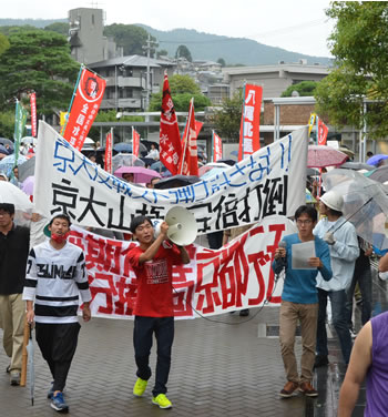 集会後には300人が学内デモ―京大包囲デモに決起。多くの京大生と周辺住民が注目と応援を寄せた。