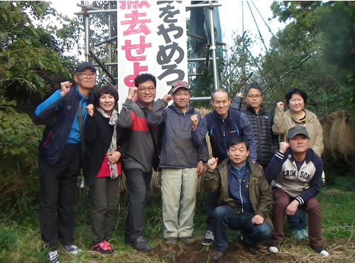 (写真 民主労総の訪日団と天神峰やぐら前で記念撮影【11月4日 成田市】)