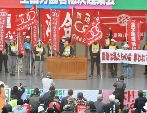 勝利の鍵は労農連帯と国際連帯の前進だ。動労千葉、動労水戸、動労総連合を先頭とする全国の労働者、学生、農民の総決起の力で農地強奪攻撃を打ち砕こう。第3滑走路反対へ、ついに決起を開始した周辺住民と連帯して、市東さんの農地を守ろう。12・4三里塚現地に大結集しよう。