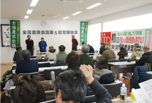 戦争・改憲を進め、日本農業を壊滅の危機に追いやる安倍農政に対し、農民の決起が始まっている。総会では、農民の生きる道が労働者階級との団結=労農連帯の中にあることをあらためて明らかにした。この一年の支部結成、組織建設の前進に続き、地域での具体的な活動に取り組むことを誓い合った。